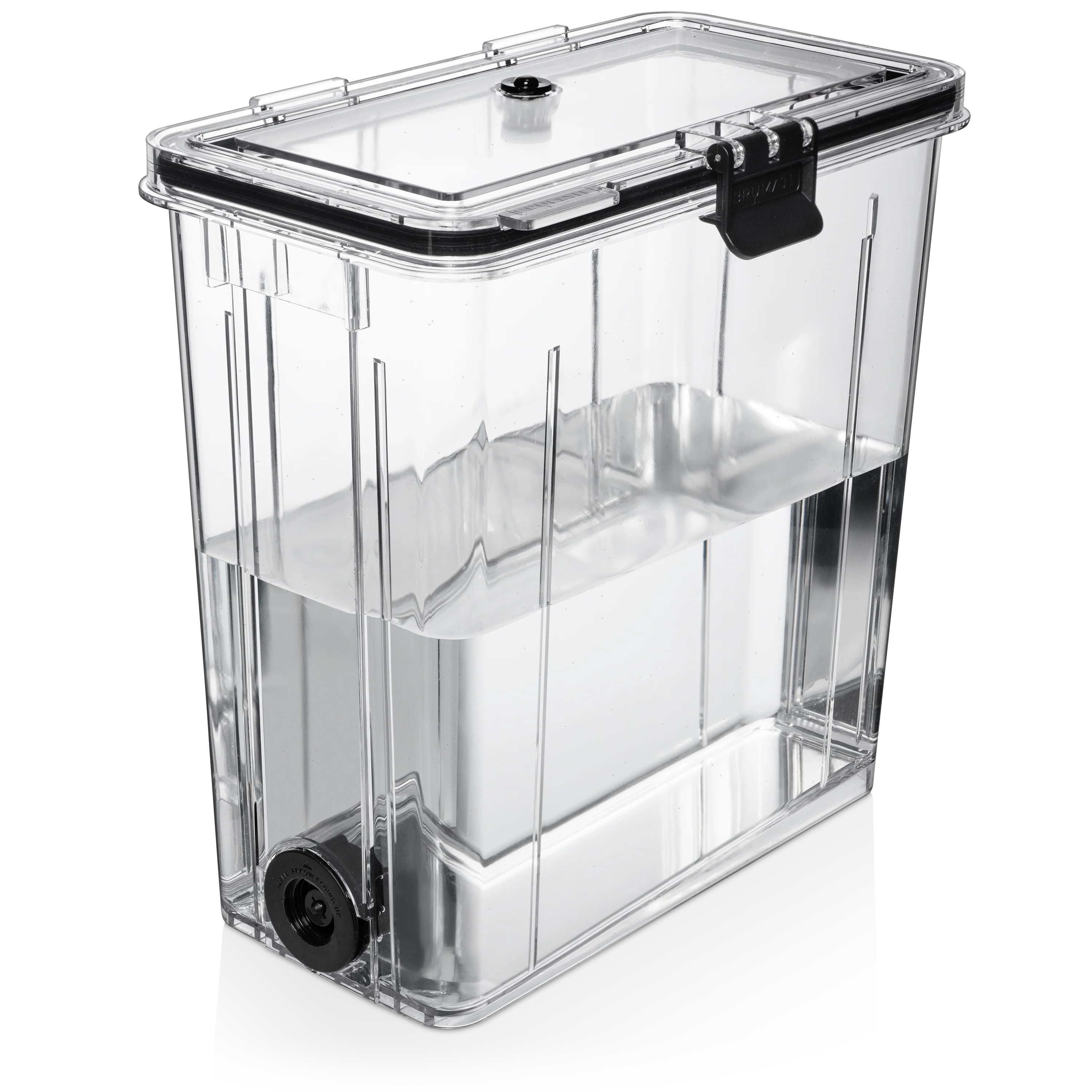 Our new patent-pending self-tapping tank is now available. This tank seals itself, which means you can make your drinks outside of the cooler and drop it in or remove the tank from the cooler with your leftover drinks without ever wasting a drop. Simply drop it in and thread on the spout from the outside to activate. When you're ready to remove the tank to save your leftover drinks or clean it, just unscrew the tap and pull it out. Fits all the 55qt BrüTank and includes the tank, lid, and tap system.