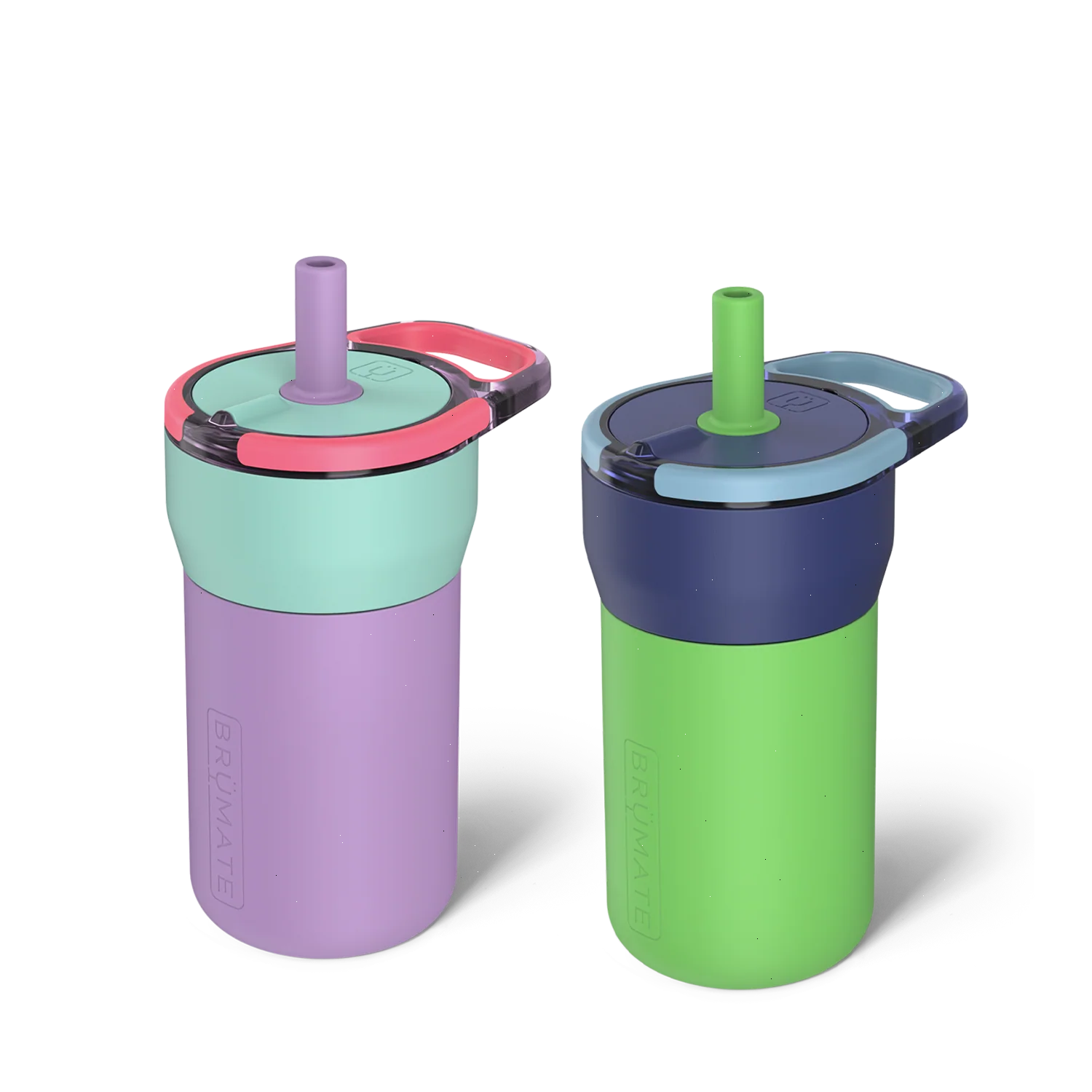 Introducing the BrüMate Leap Bundle - designed for your little one's adventures! This set includes two 100% leakproof Leap 12oz straw tumblers, each featuring spill-proof technology, a durable silicone sleeve, triple-insulation for all-day cold drinks, and a cold-key straw that keeps plastic from sitting in water. Perfect for school, playdates, and on-the-go activities, the Leap Bundle ensures double the fun, double the function, and zero spills.